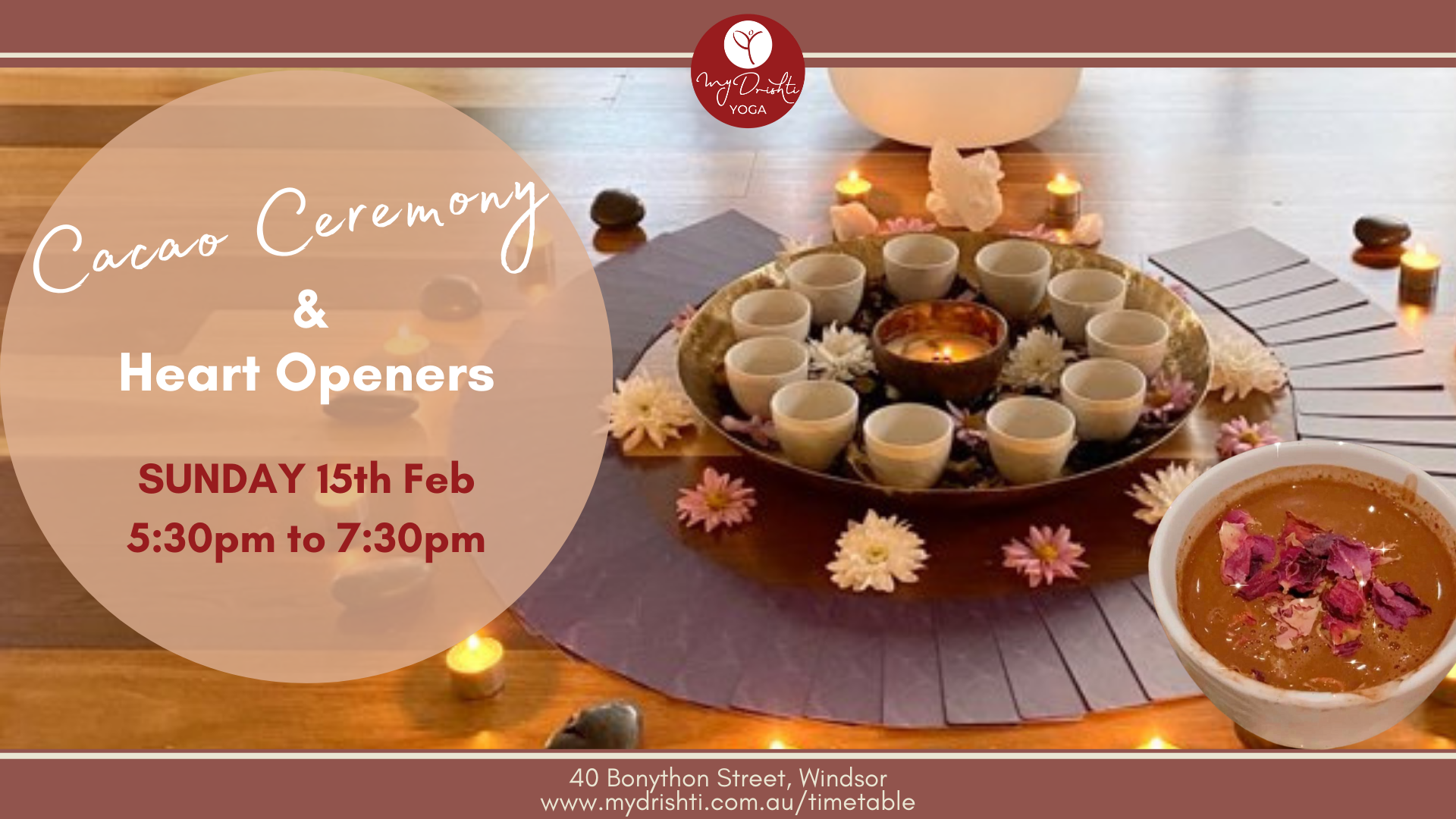 You are invited to join Carolina, Founder of myDrishti Yoga on an unforgettable journey to the heart with a cacao ceremony & heart openers masterclass.